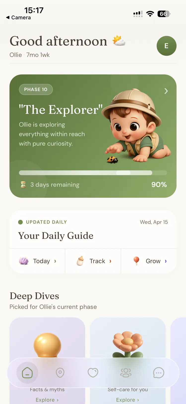 The parenting app for first-time mothers, with warm daily guidance across 35 developmental phases. Less second-guessing. More quiet confidence.
